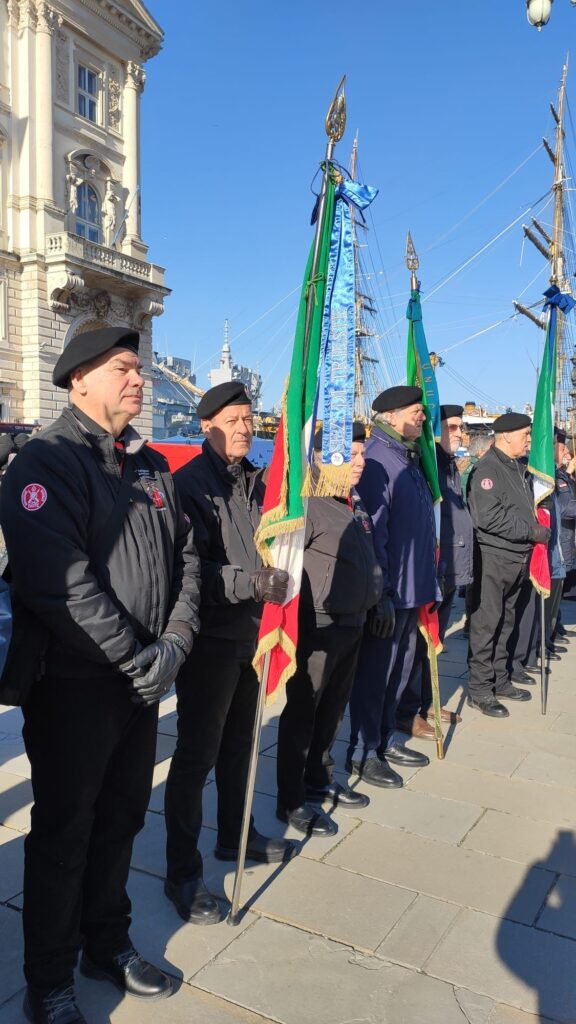 La sezione con la bandiera e la rapprestanza di Cravatte Rosse hanno presenziato – oggi 2 marzo -con tutte le altre Associazioni d’Arma all’alzabandiera in occasione della visita della nave Vespucci e dell’unità d’assalto anfibio multiruolo “Trieste” ( la più grande costruita per la Marina dalla cantieristica nazionale). Presente il 4 Reggimento Carabinieri a cavallo, la banda della Marina, la fanfara dei Bersaglieri e picchetto in armi.