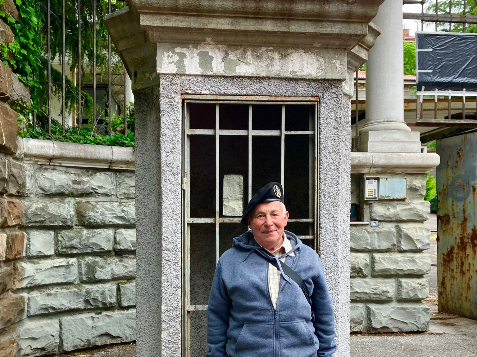 A 60 anni di distanza è immortalato in una splendida foto alla garitta fuori la porta carraia dove al tempo faceva la guardia, con saluto obbligato anche ai passanti civili.