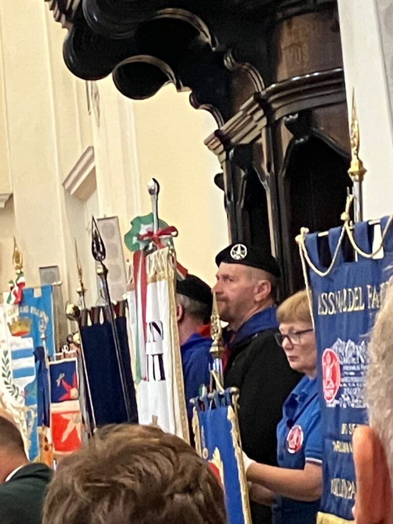 Ultimi scatti della bella giornata di Camisano, tra cui il gradito omaggio del gagliardetto, ricevuto dal Presidente della locale Sezione del Fante, Tiziano Romio.