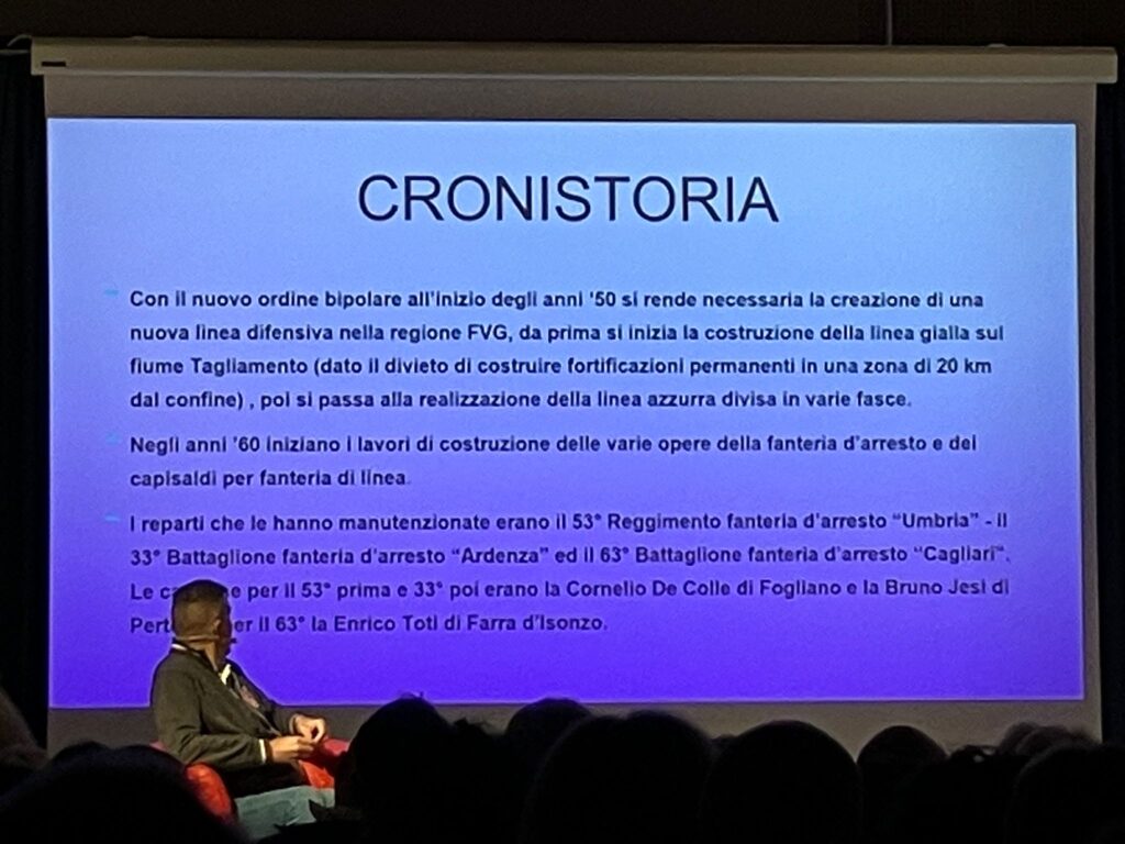 Nell’ambito della rasssegna “Noi e la Storia” organizzata dal Comune di Ronchi dei Legionari, le Cravatte Rosse hanno voluto essere presenti alla conferenza tenuta dall’amico Giorgio Venturini del gruppo storico della Sezione del Fante di Cividale. Giorgio, vero esperto del tena, ha fatto una panoramica dei bunker e delle postazioni messe in opera sul Carso Isontino dall’Esercito Italiano nel periodo della Guerra Fredda, fornendo molte informazioni e curiosità al riguardo. L’argomento ha suscitato grande interesse nell’auditorium, al completo della sua capienza.