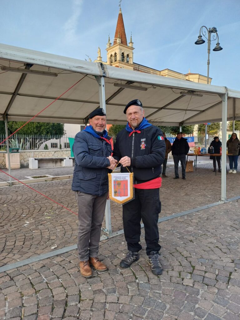 Cravatte Rosse del Gruppo Veneto con due dei nostri soci Ramanzin e Digiacomantonio erano presenti il 30 novembre alla manifestazione tenutasi a Montecchio di Crosara prov.di Verona; buona partecipazione con la presenza del presidente nazionale fanti dott.Gianni Stucchi e al vicepresidente Giuliano Danieli poi i labari di Verona dell’Arco Romano e numerose bandiere di gruppi fanti associazioni del Veneto. I nostri fanti hanno donato un gagliardetto al presidente Davide Roncari,